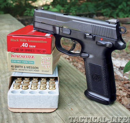 Three different loads were tested for accuracy in the FNX-40. All delivered exceptional accuracy at 25 yards from a sandbag rest and the pistol functioned with flawless reliability.