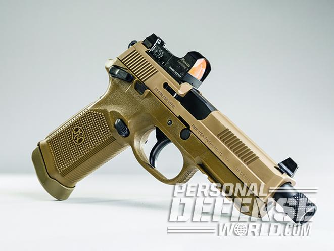 Speaking of the trigger, while the FNX-45 Tactical uses a traditional DA/SA system, it has been enhanced for modern-day gunfighters. The DA press is smooth and consistent, and it measured about 13 pounds on average on my test pistol, though it felt like much less. In fact, I found myself decocking the hammer during the range testing so I could fire the pistol in DA mode.
