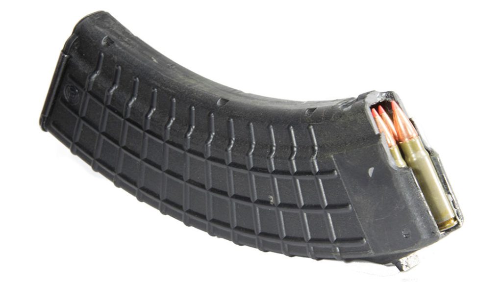 This is because, unlike STANAGs, Warsaw Pact-favorite AK magazines rock into place. Consequently, the little tab that secures the magazine inside the rifle bears the brunt of the entire gun’s weight should the rifle fall on the magazine.
