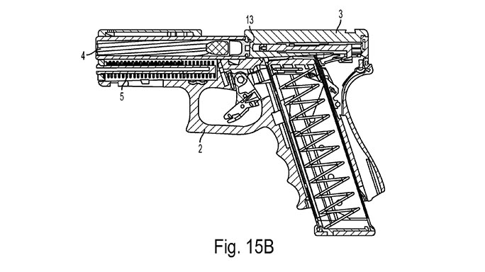 Details are scant right now, but we also got a copy of the patent application filed for the new Glock 46. See above for photos from that application. Here’s what the abstract says: