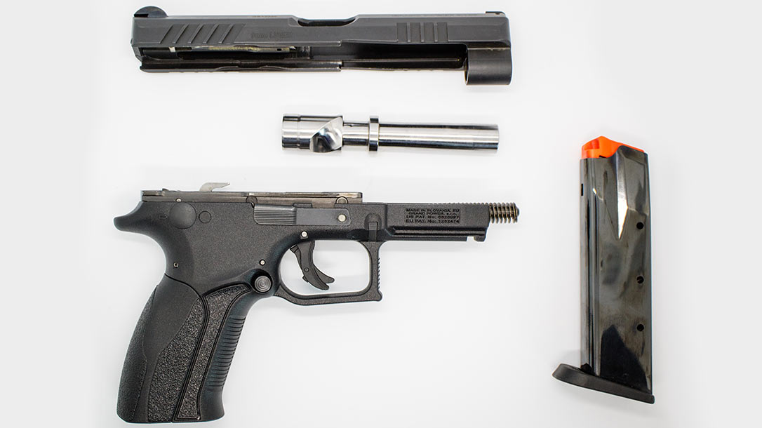Slow-motion footage shows that, most often, it’s the slide’s movement that causes our perception of recoil. The round firing and the slide moving are prerequisites of a functioning repeating pistol and cannot be avoided. What Grand Power has done is eliminate the step that could be altered by changing what had been shifts in barrel direction and movement.