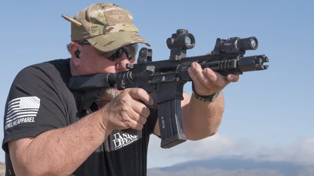 Depending on the background the dot may not wash out like red can against some colors. In the shoot house or indoors it’s possible to run them on lower intensity and still see them. Testing the MRO Green in 2018 it did not seem to wash out when using a very bright WML (Weapons Mounted Light). Same has been true with the Holosun SCS carry especially using the “open circle” reticle.