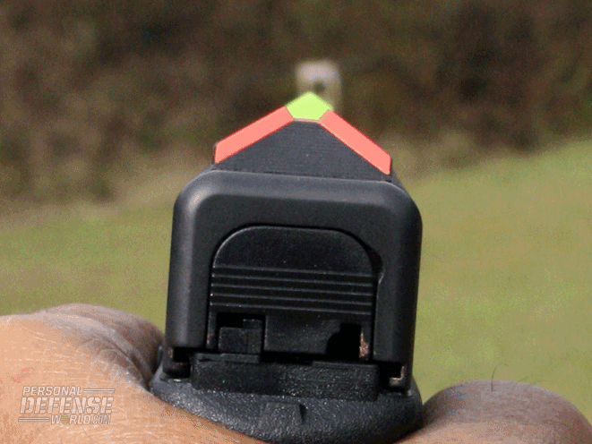 That range session showed me that the Glock 26 shot 4 to 5 inches high and still wasn’t grouping as well as my earlier Glock 26 pistols. Once I got to Phoenix, the training crew there headed out with me to the range while the students were watching our safety movie. The gun shot high with those sights for all of us, and still wasn’t grouping the way we thought it should. Five of us, four of whom were Glock 26 owners, thought the groups were too big and the shots too high.
