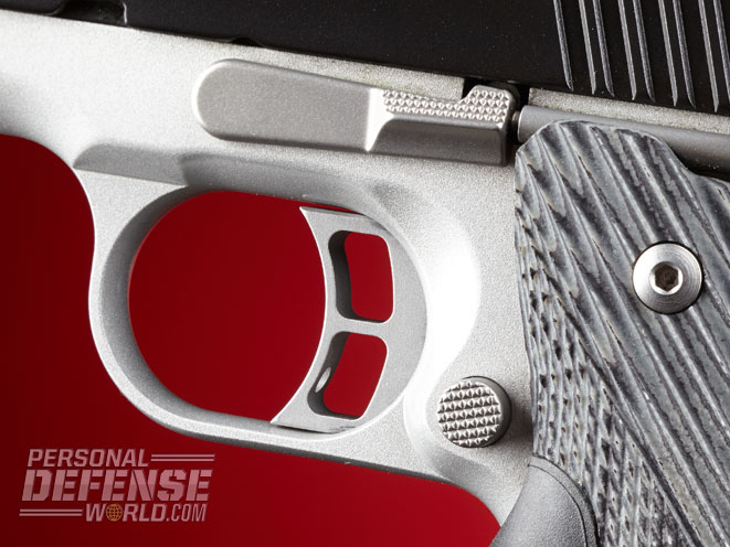 Kimber equips the 1911 with a skeletonized trigger and an extended magazine release for fumble-free reloading.