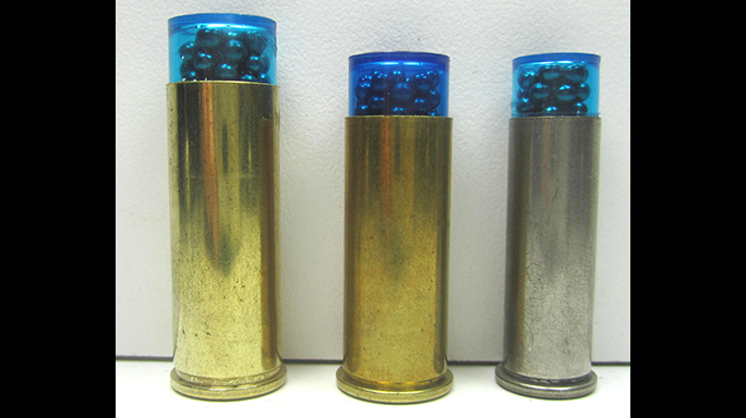 For versatility, I used some .45 ACP bullets. The only thing is you have to put a cannelure on the bullet. Failure to do that will result in bullets walking, and in a tubular magazine they will be shoved down into the case. I use a CH tool, and it isn’t very hard to perform that task. For those who don’t like to use lead slugs, another option are the copper-plated slugs produced by a couple of makers; Berry and Ranier are two of the most common. The problem is that they also lack a cannelure, and for best results one should be installed. Since they are soft, a cannelure is easy to install; just be careful not to make it too deep. That will weaken the bullet, causing negative results. In addition, most of the plated bullets list the maximum velocity they should be used at. For best results, follow that advice. Since most loads are used for general target practice, high velocity isn’t necessary.