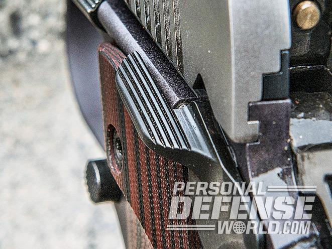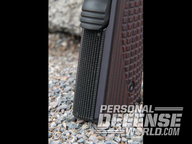 Testing was completed with only one change to the pistol: grip panels. Slim line grips are great, very popular and work for many shooters, just not me. My large hands make them uncomfortable, and don’t allow for a complete grip on the pistol. Some form of VZ grips adorn every 1911 I’ve carried with any consistency, so a set of the company’s Elite Tactical Carry grips were moved over from one of my Delta Elites. These grips provide moderate texture in just the right places, lessening any snagging risk on clothing. VZ’s Super Scoop cut allows for magazine changes with no need to alter my grip. They not only ensure a fair test of the pistol, but they provide a really nice look on the black frame.