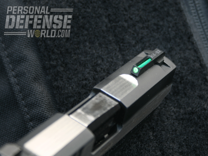 The fixed sights are the SIGLite luminous design. Up front you have a combinations green fiber optic and Tritium blend. The rear sight is two-dot Tritium that is drift-adjustable, though it’s highly unlikely that would be necessary.