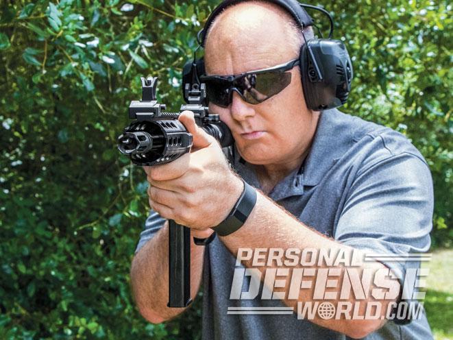 Yet, James was also right in his assessment of the pistol as a practical defensive tool. A PDW is something that is typically much more compact than a rifle, yet larger than the typical handgun. Frequently, a PDW will be chambered in a specialty cartridge or even a rifle caliber. However, this gun is chambered in 9mm, a cartridge more commonly associated with handguns and submachine guns. Even so, the 9mm can be a potent round that’s more than adequate for self-defense.