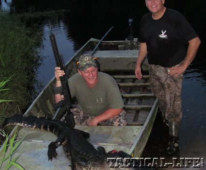 “The [best] ammo I use is CCI,” Landry concluded. “That’s one of the hottest bullets they’ve got. Most of the time we use what I can get. Most of the time, we use the Mini Mag 40 grain.” Their choices of guns and ammo appear to be quite adequate, since they killed more than 400 gators during their 2011 campaign.