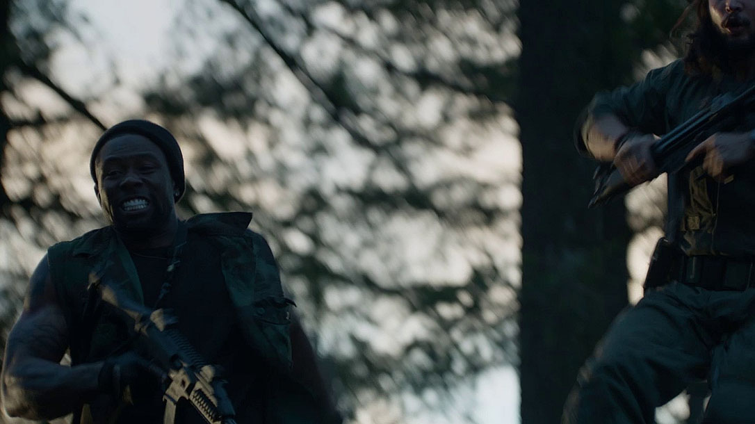 At 1:51, Trevante Rhodes can be seen running with the CZ Scorpion Evo 3 A1.