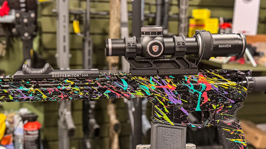 I own a Maven Optics 1-10×28 FFP riflescope and noticed it wasn’t on the compatibility chart, so I wanted to test it out with the Scopeswitch to see if it would be compatible.