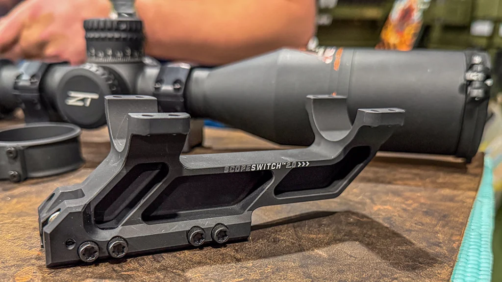 For years, the only answer to quickly changing the magnification level on a Low Power Variable Optic (LPVO) has been to add a throw lever. I remember the days when the only “throw lever” available was an aftermarket ring with a lever that had to be tightened down over the magnification ring. It took a while for scope manufacturers to include an optional or non-removable throw lever as part of the scope design. Even with this advancement, the shooter still had to use their dominant or non-dominant hand to engage the lever and change the magnification level. That was when the original Scopeswitch from Antimatter Industries was released to solve this issue entirely.