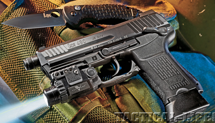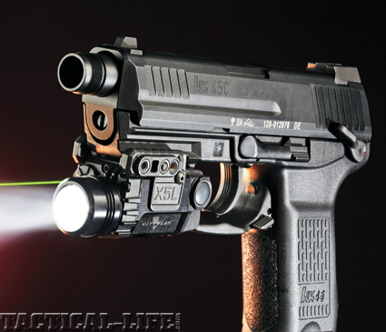 Spec-ops personnel need to be able to work in any environment. The HK45CT allows operators to mount several accessories, including this Viridian X5L laser/light combo, so target acquisition is assured in all conditions.