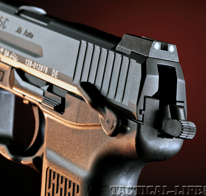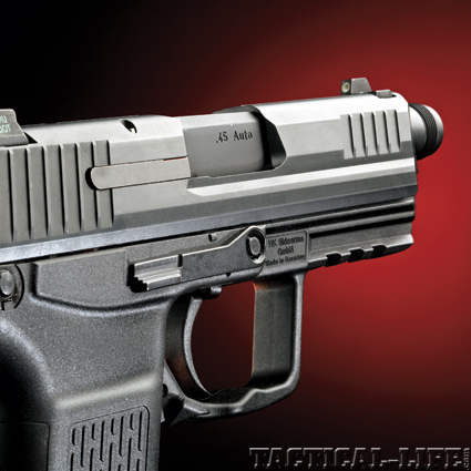 The HK45CT is shipped with low-profile tritium night sights, but it can also be ordered with high-profile sights.