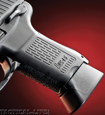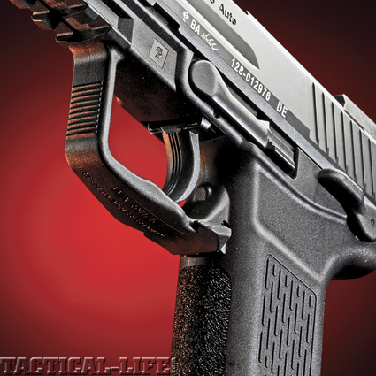 The HK45CT is a very controllable pistol due to the recoil-reducing buffer system, grip design and magazine extension used on the 10-round magazines. Though the 12.2-pound DA trigger pull is heavy and difficult to master, combat accuracy is achievable with practice. The SA trigger has a short reset and double-taps are easy to deliver accurately.