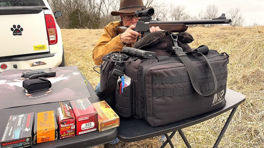 I wanted a versatile array of .223 ammunition to use in the Supreme Rifle as this cartridge is legal for use on deer in several states, plus it is an excellent varmint cartridge, be the critters four or two-legged. Checking the shelves in my ammo locker, I came up with five different loads. The first was Barnes VOR-TX Ammunition that has a 62 gr. TSX bullet, which is a boat-tail HP. Next was Black Hills Factory New cartridges that have a 68 gr. Heavy Match HP bullet. From Federal/American Eagle I had their Varmint & Predator load that has a 50 gr. JHP bullet. Another load came from Hunting Shack Munitions (HSM) and its bullet is a 62 gr. bonded soft point. Winchester’s entry was their Ranger Law Enforcement Ammunition. These cartridges carry a 64 gr. Power-Point bullet; the soft-point nose is notched for rapid expansion and energy dump.