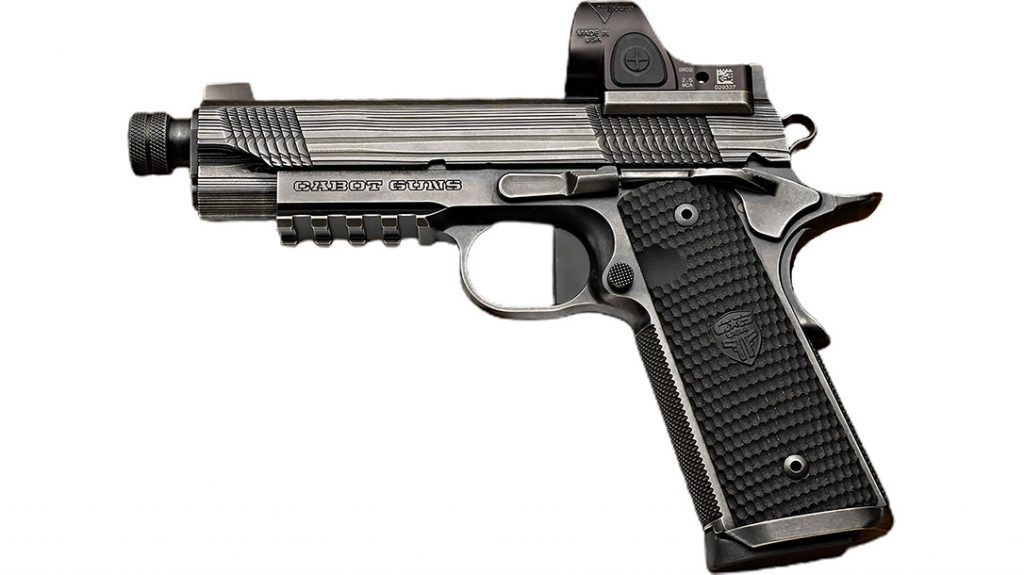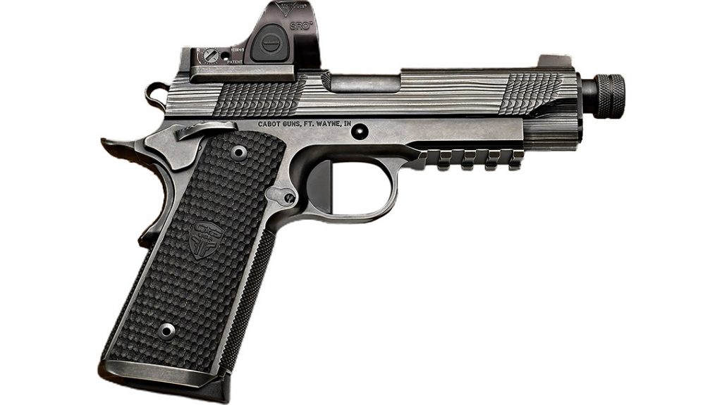 It is also a feature-rich gun with a stainless steel, match-grade barrel, polished feed ramp, a flat-faced serrated trigger set at 3.5 to 4 pounds, billet ambidextrous safeties and rhombus-cut frontstrap checkering at 24 LPI. All this is wrapped into a package that Cabot guarantees will shoot better than 1.5-inch groups at 25 yards. The price on this epic 1911 comes in at $7,495, and is absolutely on my want list. For more information, visit CabotGuns.com.