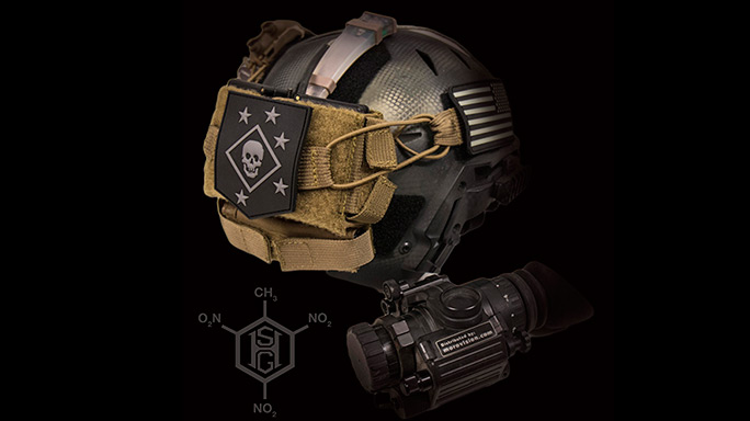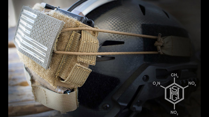 Finally, we included a hook panel on the back of the pouch to adhere to the back of common Ops-Core/Team Wendy helmets, as well as two bungee support tabs that adhere to the side of the helmet to help keep the pouch in place in austere environments.
