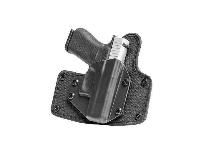CrossBreed got its start with hybrid holsters. And the company hasn’t traveled away from its original idea. The SnapSlide is a belt-slide holster that keeps guns high and tight on the body. This provides both comfort and easy concealability. The holster carries the gun with an FBI cant for easy access. However, it is also available for guns with RMR optics in a straight cant.