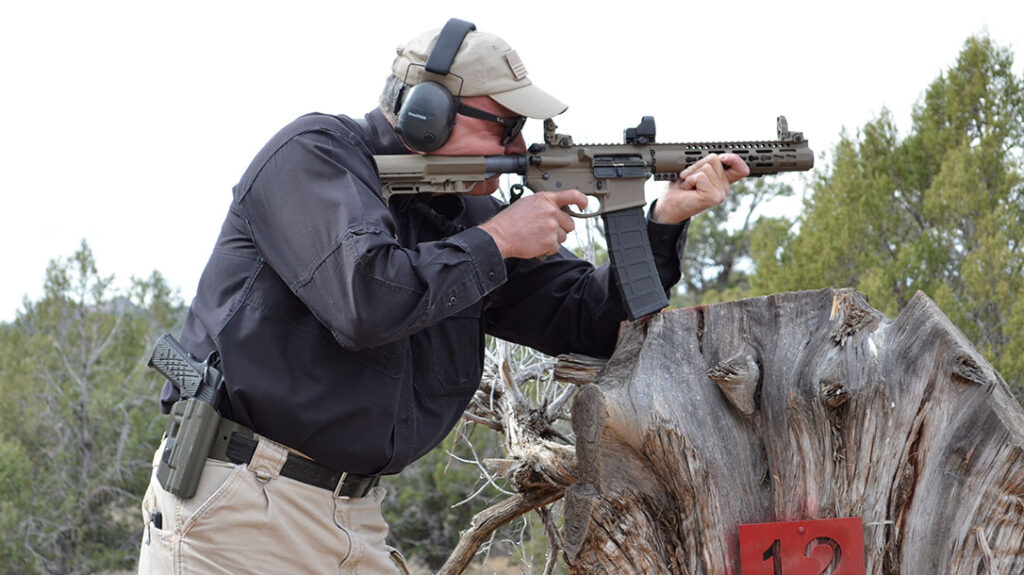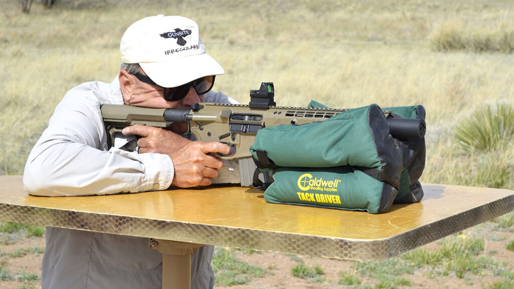 Rise Armament’s RA-535 APT trigger made shooting this little gun a delight. Likewise, the RMR’s dot never wavered while I added the 3.25 pounds of pressure needed to break the shot. Using a sand-filled Caldwell Tack Driver helped stabilize the SBR for zeroing.