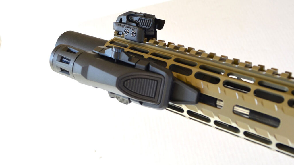 For target identification, I added an Inforce weapon-mounted light (WML) on the handguard at the 9 o’clock position. It also acts as a hand-stop to keep me from burning my hand on the suppressor.
