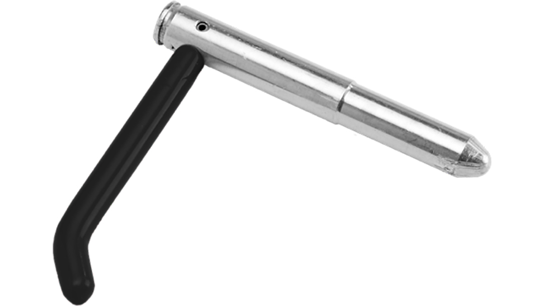The dual-purpose Hornady Rapid Rack allows LEOs and military personnel to keep their long guns ready with a fully charged mag and a visibly empty chamber. To use, you insert the cartridge-shaped portion into the chamber—leaving the lever protruding from the ejection port—and close the bolt and insert a loaded mag. Then you grab the lever and pull it straight back. This allows the Rapid Rack to fall to the ground, causing the fully charged bolt to spring forward and feed a round into the chamber.