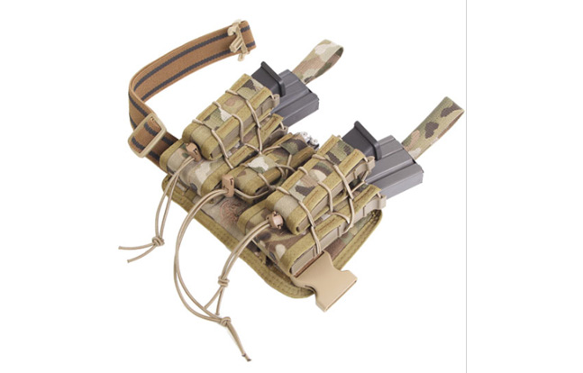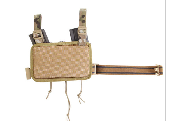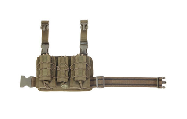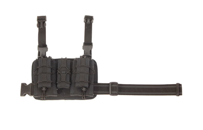 The Taco pouches are made using Cordura, as well as an injection molded polymer and shock-cord. The adjustable, positive grip means that it is not necessary to use any other securing systems. In addition, the HSGI Costa Leg Rig has webbing tabs for bungee retainers. Loop Velcro is sewn into the inside of the rifle pouch if the user wants to use adhesive backed hook velcro on the magazine body for extra security.