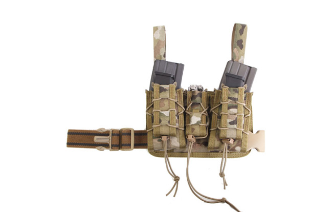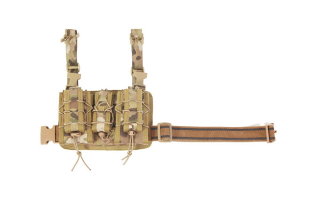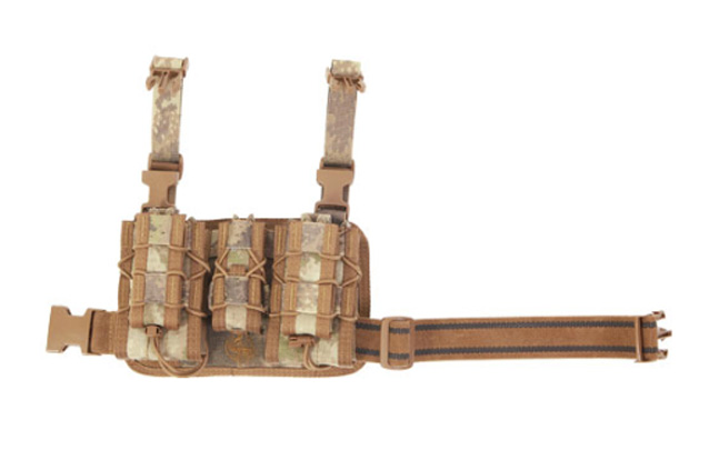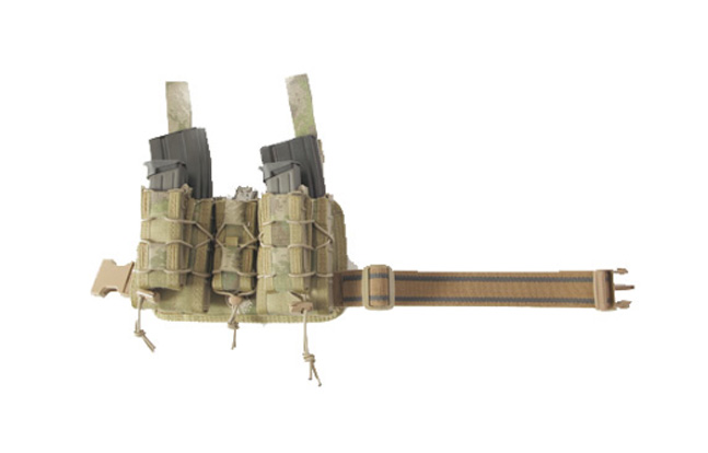High Speed Gear (HSGI) has introduced their new Costa Leg Rig. This leg rig is perfect for use at the range, in a training class or in the field when running a low profile setup. One of the most unique features of this product is the Double Decker Taco, which combines a modular rifle mag pouch and a modular pistol mag pouch into one unit. This pouch is capable of holding a combination of mags and a number of different accessories. At the base of the pouch is the Taco, while the USGI, HK, PMAG, ARC, FAL, AK 30/ 40, LR20 and M14 magazines are securely held, ready for quick use. The taco only takes up 3 horizontal inches of the platform.