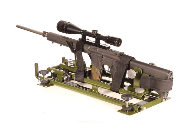 The rest features surgically precise and user friendly windage and elevation controls. Dual nitrogen-filled compression dampers progressively absorb the recoil pulse and then return the gun to battery. The gun platform uses four linear motion bearings that ride along polished chrome rails.