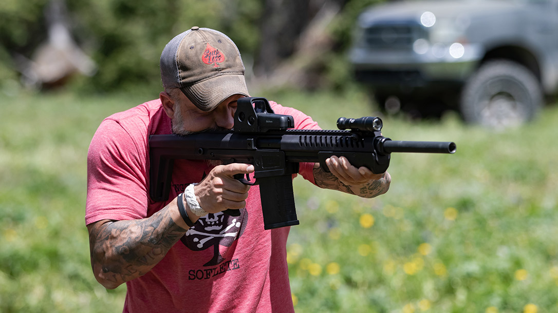 Let’s be honest about a few things. The pump guns most selected for home defense—Remington 870s, Mossberg 500s/590s and the like— can be outfitted with components optimized for defensive use. However, these decades old shotgun designs use traditional stocks. An added pistol grip works but sits pretty far back, placing the weight forward of the shooting hand. This poorly distributed weight makes the gun really font-heavy. Add an extended magazine tube, some kind of optic, rails and accessories, and that’s a lot of weight up front. Not to mention it usually has an extremely light buttstock that does nothing to help balance things out. It’s time for something new.