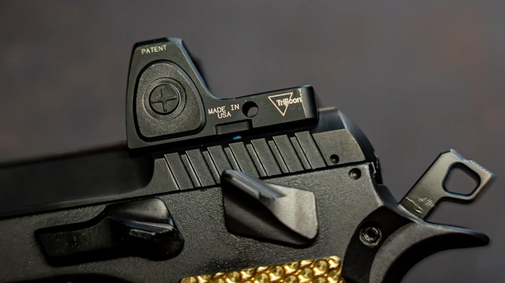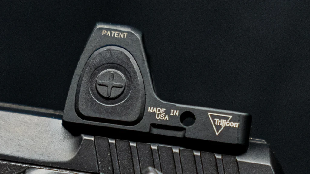 It’s hard to beat the rugged Trijicon RMR when it comes to a direct slide-mounted red dot optic. It’s a great all-around optic for competitive shooting, concealed carry, law enforcement or military use, or simple target shooting.