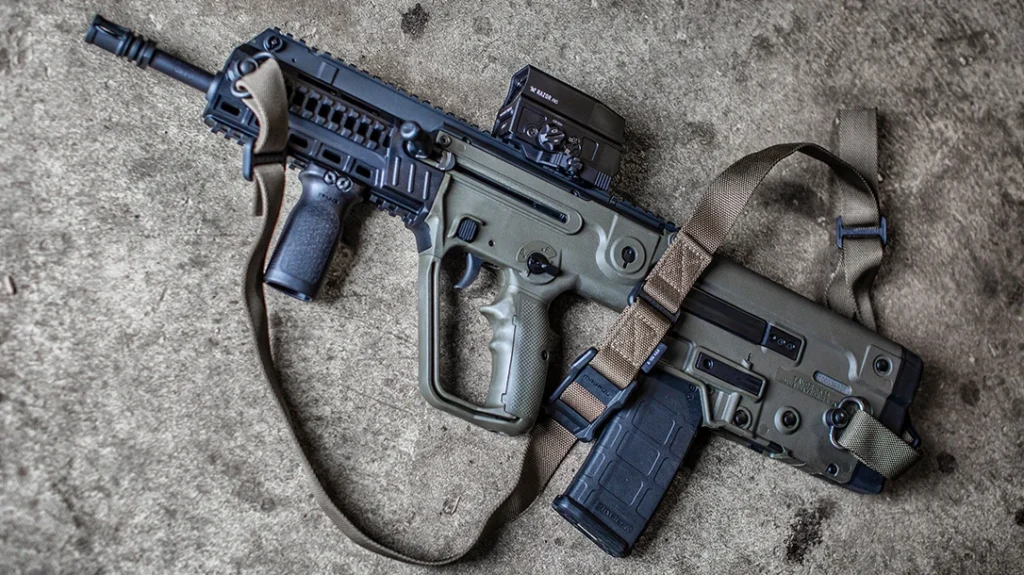Key enhancements also include relocating the charging handle closer to the shooter’s center mass for improved ergonomics and control. The Tavor X95 features a modular pistol grip system, allowing shooters to swap the Tavor-style grip for a standard pistol grip with a traditional trigger guard. A new, lower-profile bolt release button further refines the rifle’s sleek, efficient design.