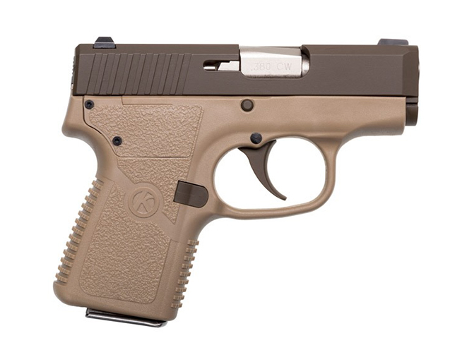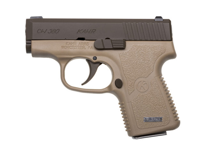 The CW380 Patriot Brown includes a locked breech, modified Browning type recoil lug and uses Kahr’s “safe cam” action like all the other pistols made by the Greeley, Pa.-based company. Rounding out the attributes of this model is a drift adjustable white bar-dot combat rear sight and a pinned-in polymer front sight. This pistol has a 6+1 capacity and comes with one six-round magazine.