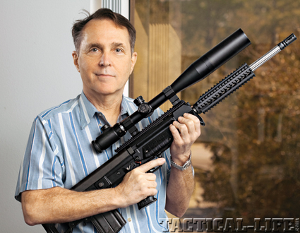 Kel-Tec president George Kellgren with a longer barreled version of the RFB. With the correct optics mounted, the RFB offers enough accuracy for long-range shooting as well. Oleg Volk Photo