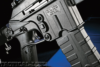 The SU-16E feeds from AR-15/M16 magazines and employs polymer upper and lower receivers.