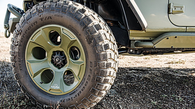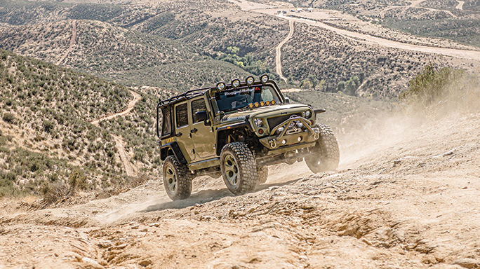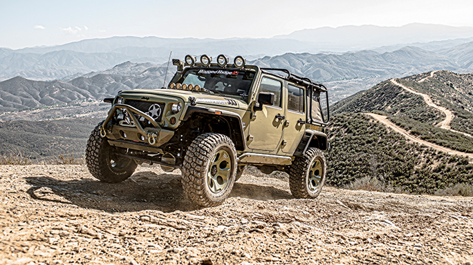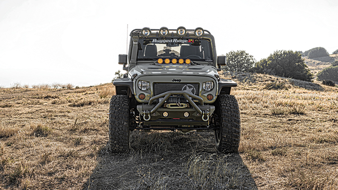 Henk Van Dongen, Rugged Ridge’s director of marketing, suggested the following: “Since Kilroy is built on the Jeep Rubicon platform, it is already quite capable off-road out of the factory. I would certainly suggest going with our Hurricane fender flares, a bumper setup and a lift kit. This allows you to run bigger tires to tackle larger obstacles, and the bumpers are always good protection.”