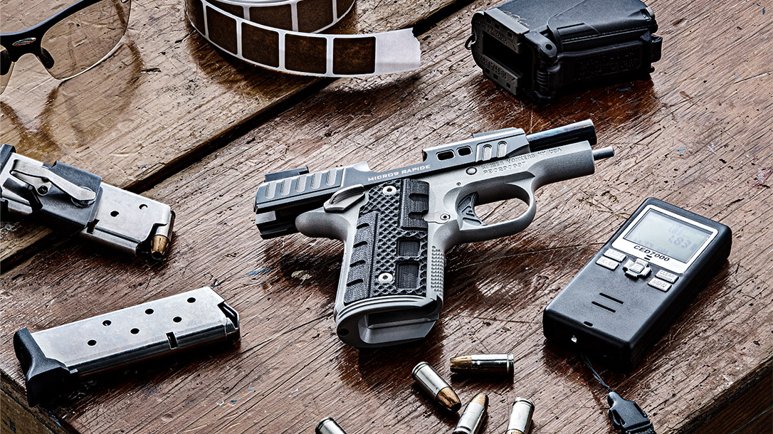 Trigger pull on my Micro 9 Rapide Black Ice registered right at 7 pounds, and while that sounds heavy, I feel it is just about right for a compact pistol weighing less than a pound. It is reasonably crisp, and I was able to maintain a steady sight picture while completing the trigger press. Shooting from a seated rest with my targets at 15 yards, nearly all of my five-shot groups measured under 1.75 inches. I ran everything from 115-grain range ammo to expensive 147-grain defense rounds, and the little gun chugged right along. There were no failures of any kind during my testing.