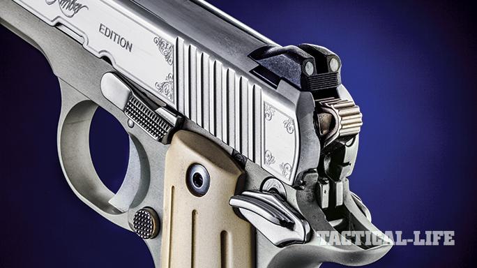 The slide has a (really) bright mirror-polished finish and has been finely engraved with delicate scroll accents and “Special Edition” markings. While these features are not actually necessary on a pistol designed for concealed carry, as my wife Becky put it, “What’s wrong with a little bit of pretty?” Who am I to argue?