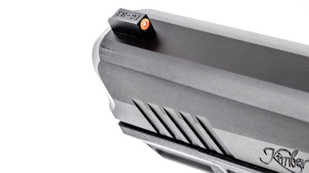 This Kimber bites with force, too. It snacks on +P 9mm loads with relish and can be counted to put rounds on target.
