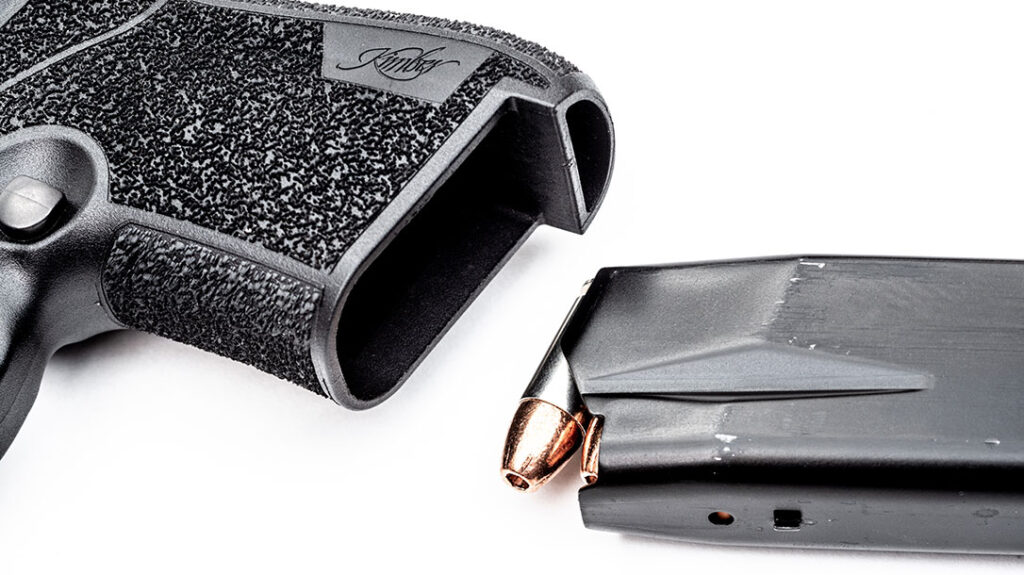 Even though the grip was not ideal for my paws, the stippling did its job and kept the pistol secure while firing. Kimber offers a 13-round extended magazine, and I’ll be picking more of these up soon at $40 a pop.