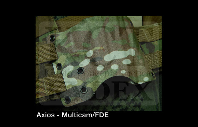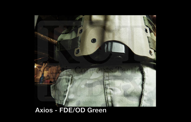 Kinetic Concepts Tactical (KCT), a Michigan-based manufacturer of kydex holsters and magazine carriers, is unveiling their new MOLLE-Link holster. This system enables the end user to carry a holster on gear that has MOLLE/PALS webbing without installing extra hardware which requires adjustment and maintenance. It is compatible with Mil-Spec spaced gear with 1″ wide nylon webbing and 1″ spacing between the rows.