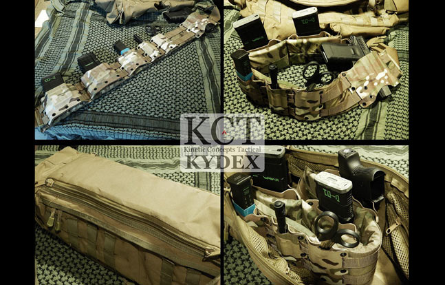As Jerkingthetrigger.com points out, KCT is adapting the concept to a line of pouches and carriers to outfit a battle belt, resulting in a compact load carriage system.
