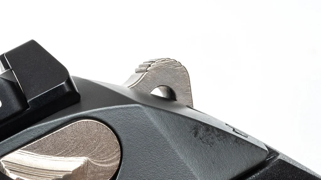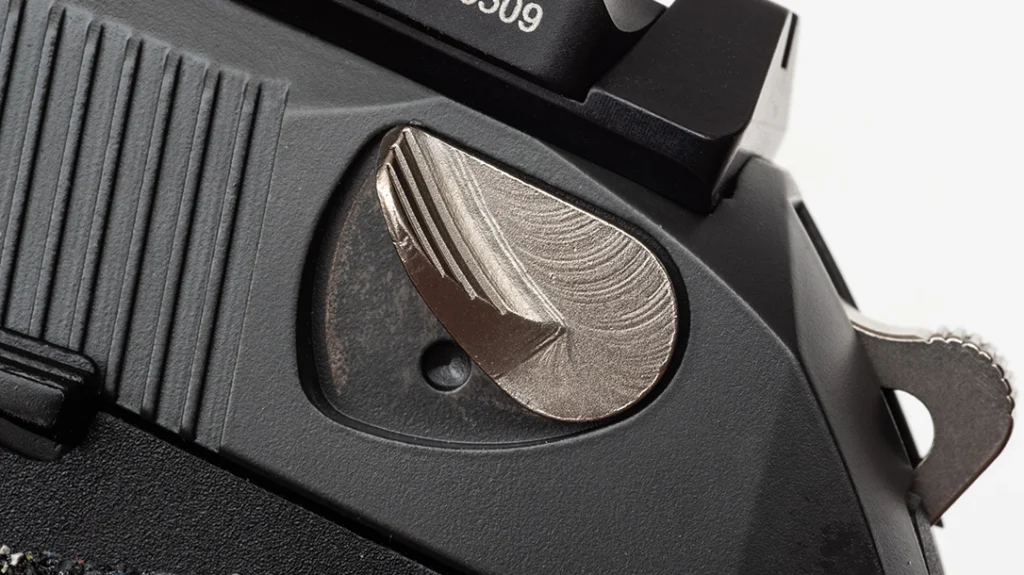 The pistol I received had the optional Gray Guns flat-faced trigger, which also improved the feel of the trigger. Likewise, it changes the geometry of the trigger for an even better trigger stroke.