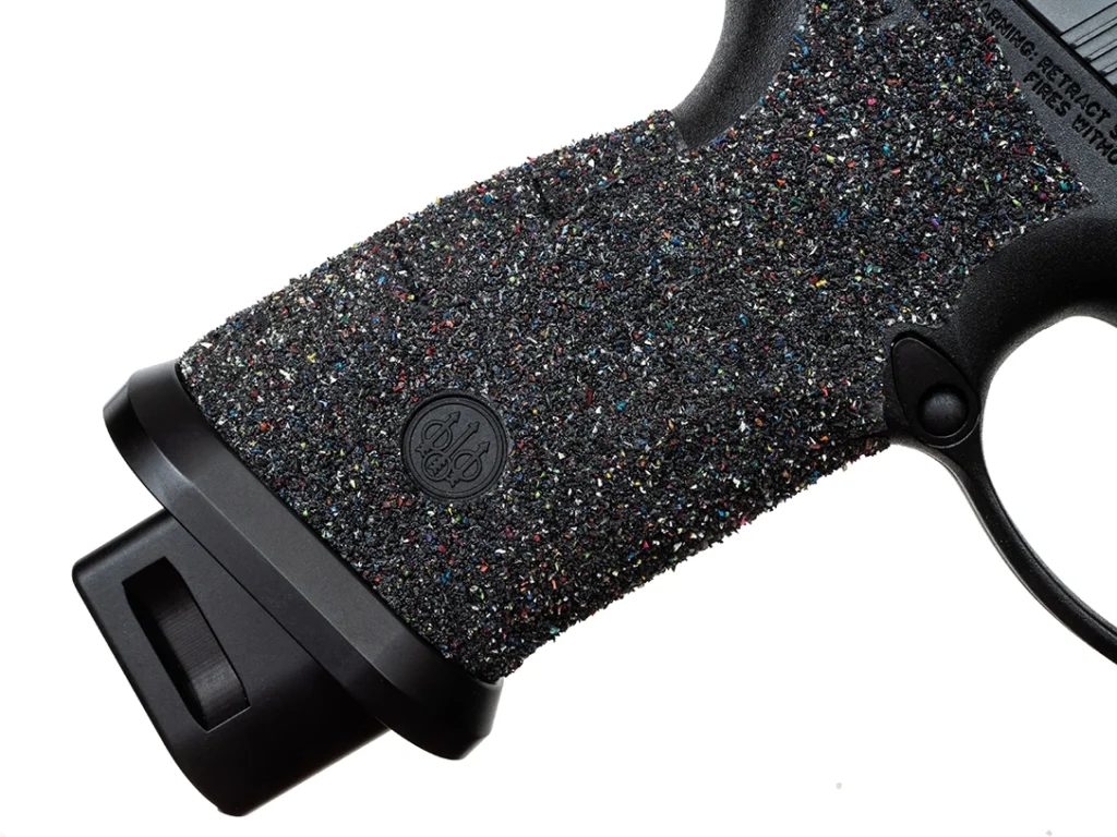 The pistol I received for review had the grip already mounted, and I really liked the feel of it right off the bat. It had a slightly cushiony feel, making it comfortable in the hand. Additionally, the multi-colored speckles added a bit of contrast to the rest of the pistol’s all-black appearance.