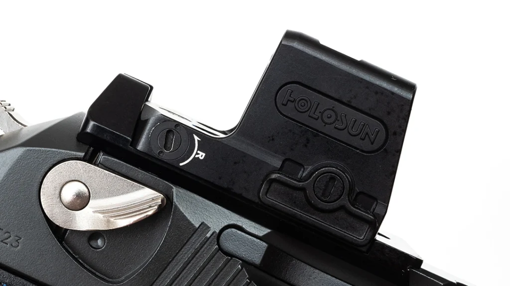 For those who want to rock a red-dot optic, Langdon offers its own low-mount RDO system. It can work with a variety of optics from brands like Trijicon, Holosun, Doctor, Leupold, and Sig Sauer. Each plate includes its own rear sight for co-witnessing with the factory front sight.