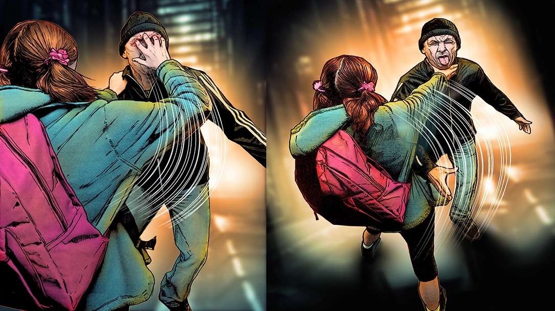 Now, when you focus on landing a really hard kick between the legs of a guy (I hear it hurts the ladies, as well), you might give away that you are going to kick because you will be “loading up.” Watch out for this, and try not to “telegraph” your intentions. Position yourself in such a way that your strong, kicking leg is going to be the back leg. Keep talking to the person and be very animated, with lots of movement. Then, out of the blue, KABOOM! Oh, and since a knee strike is considered to be a kick, you can use the knee as well. Remember, if one is good, two will be better!