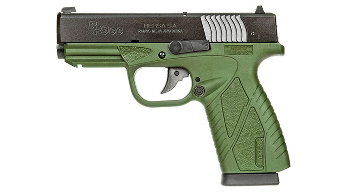The BP Concealed Carry, or BPCC, is Bersa’s first polymer-framed pistol and features a single-stack magazine, so it is thin in hand. Models are available in .380 ACP, 9mm and .40 S&W. All of the controls are ambidextrous, and it uses a short-reset trigger to activate the striker firing mechanism. Several finish options are available, and the BP9CC (shown) features an olive drab frame with a matte black slide. (732-493-0333; bersa.eagleimportsinc.com)