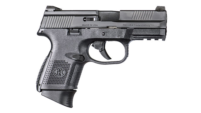 The new 9mm FNS-9 Compact has all the features of the full-sized FNS-9 pistol, including the ambidextrous slide stop and magazine release, but in a smaller, compact package. At only 6.7 inches in length and less than 24 ounces unloaded, the FNS-9 Compact is easy to pack. The extended magazine floorplate offers a finger rest for a full grip and better control. A .40 S&W version is also available.