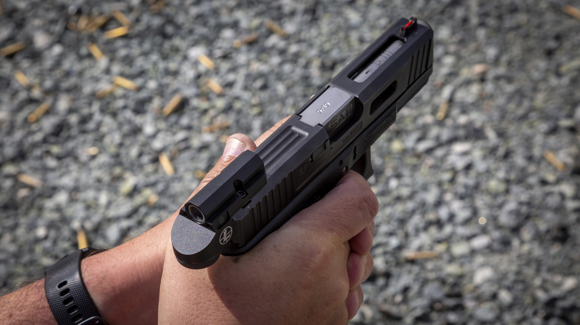 A key design feature of the DPM is how it mimics a rear sight. Take away the DPM’s dot and it functions like a ghost ring sight. There are a couple of dots on the sight’s rear that look like what you see on a standard rear iron sight. These recessed dots can be filled in with a paint pen, if that’s your jam. I left them unfilled, as they were visible enough that way without being distracting during normal use. On my pistol, the 0.175-inch high shoulders of the DPM’s body line up with the top of the front sight, as well. So, the unpowered sight works as an iron sight without the need for suppressor sight nonsense.