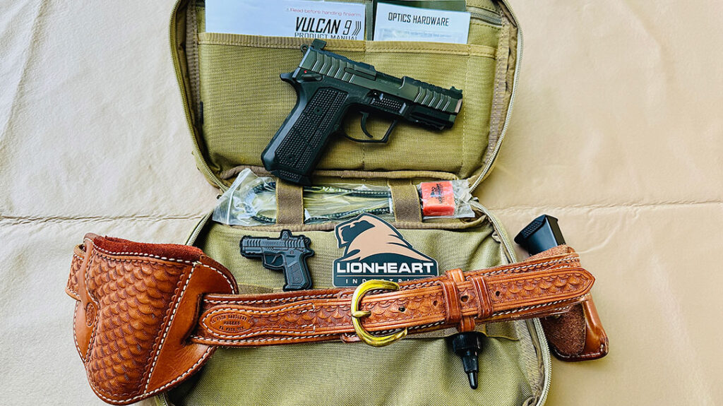 My test gun came in a tan, ballistic nylon case with a zipper closure and carrying handles. Inside was a zippered compartment for the Vulcan 9, pouches for the optics hardware, and a very detailed owner’s manual.